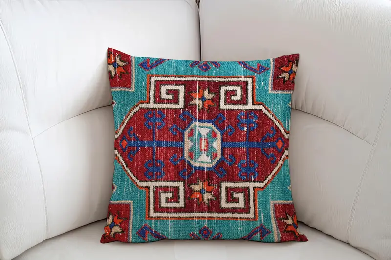 レッドサウスウェスタン刺繍入りクッション、手作りヴィンテージ長方形枕