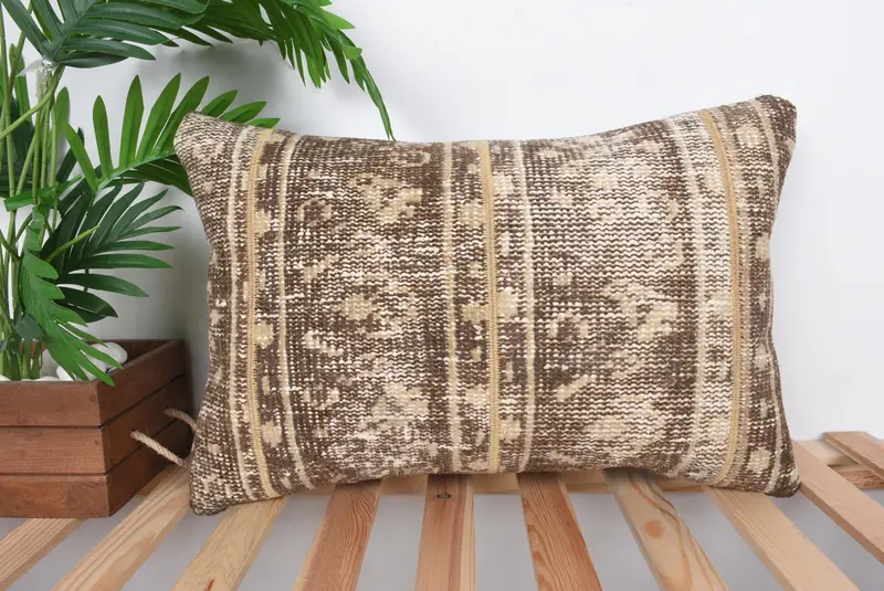 ブラウン & ベージュ パッチワーク クッション、24 x 16 刺繍クッション