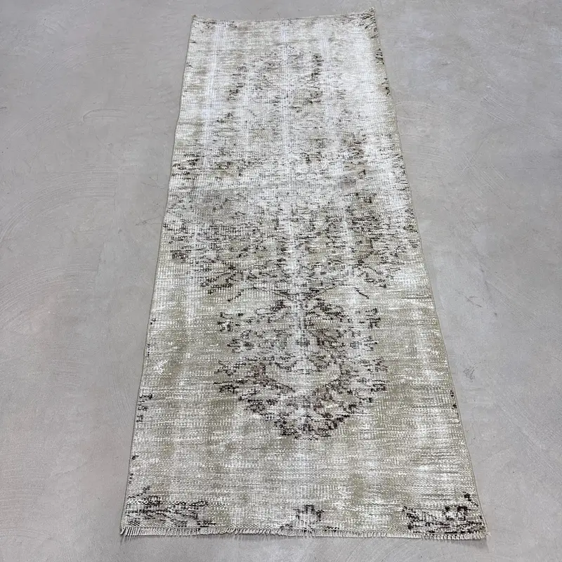エレガントなグリーンオリエンタルラグ、2.6x6.7フィート、ブラウンアクセント付き