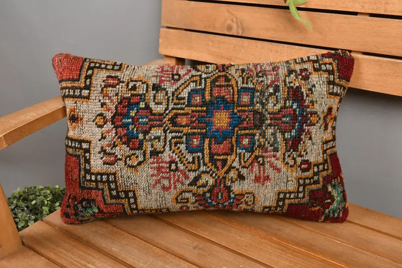 花柄刺繍入りレッドリネンクッション、12x20 ヴィンテージクッション