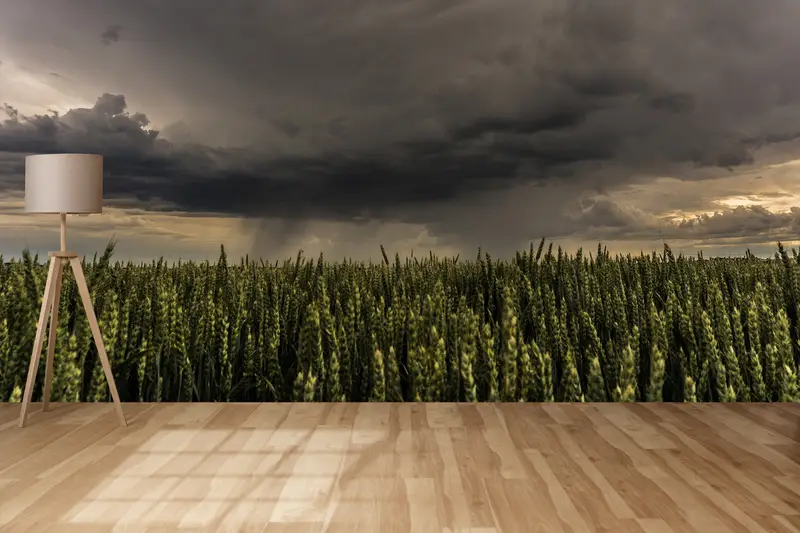 プリントされた自然壁紙: エレガントな装飾のための曇りの日の風景