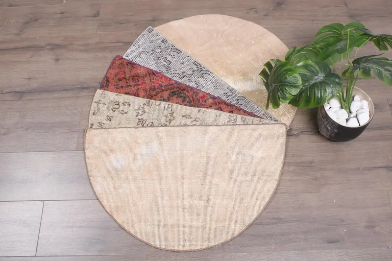 ノンスリップウールドアマット、18x30インチの半円形キリムラグ