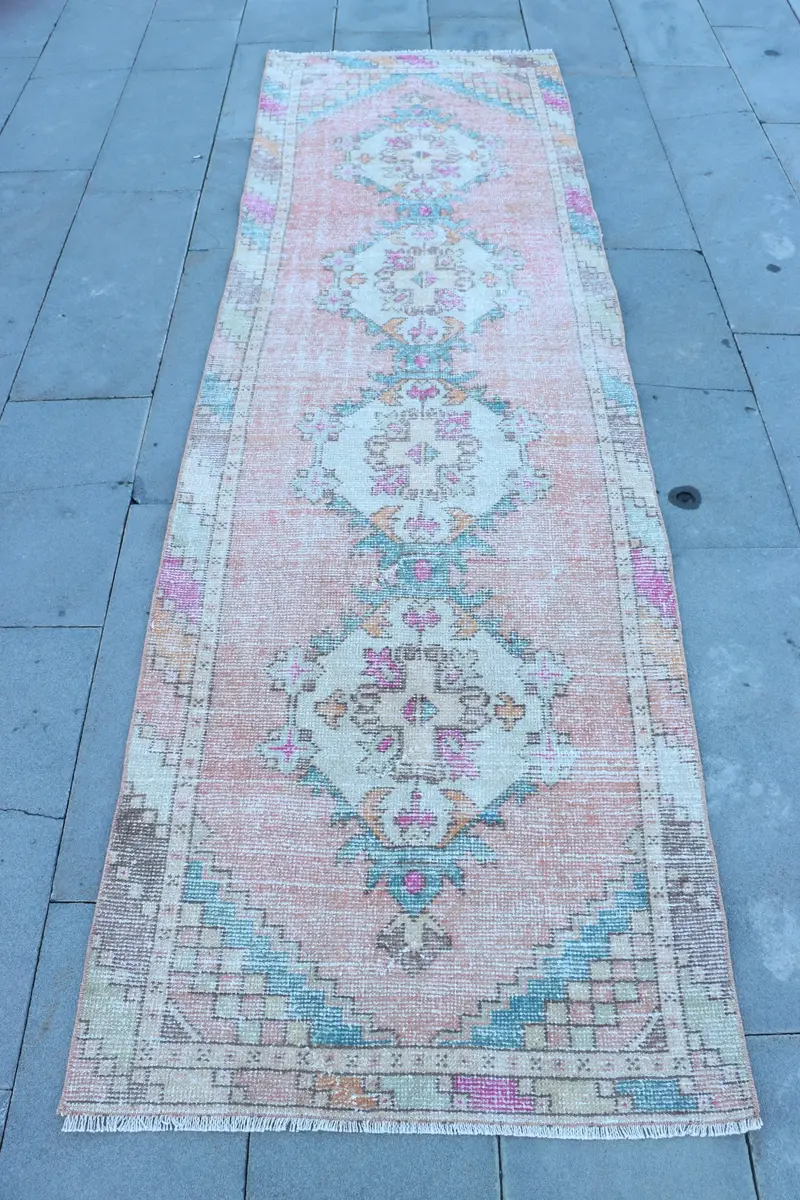 エレガントなブラウン オリエンタル ラグ、2.9x9.3 フィート ベージュ アクセント