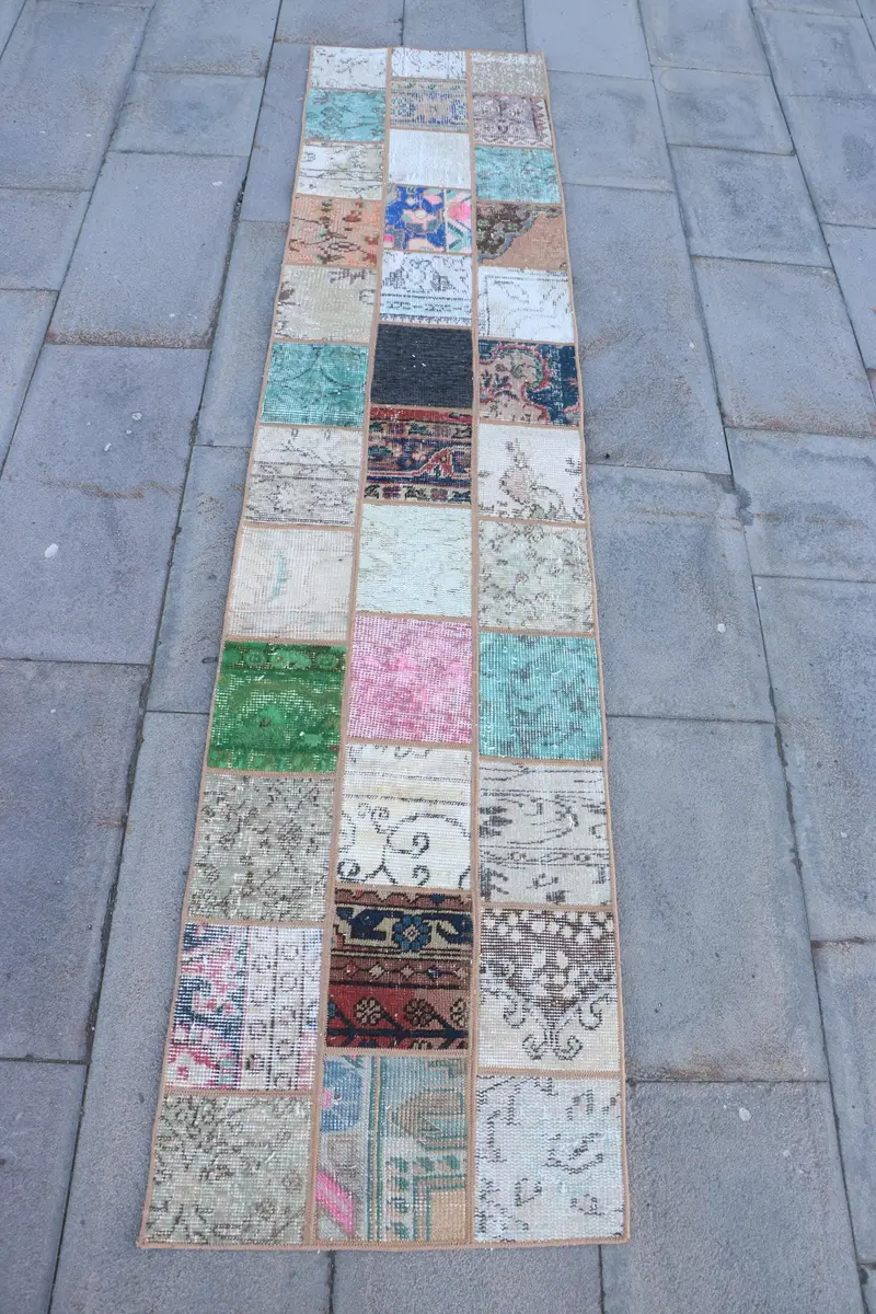 グリーン&ブルーストライプラグ、1.8x8フィート幾何学デザイン