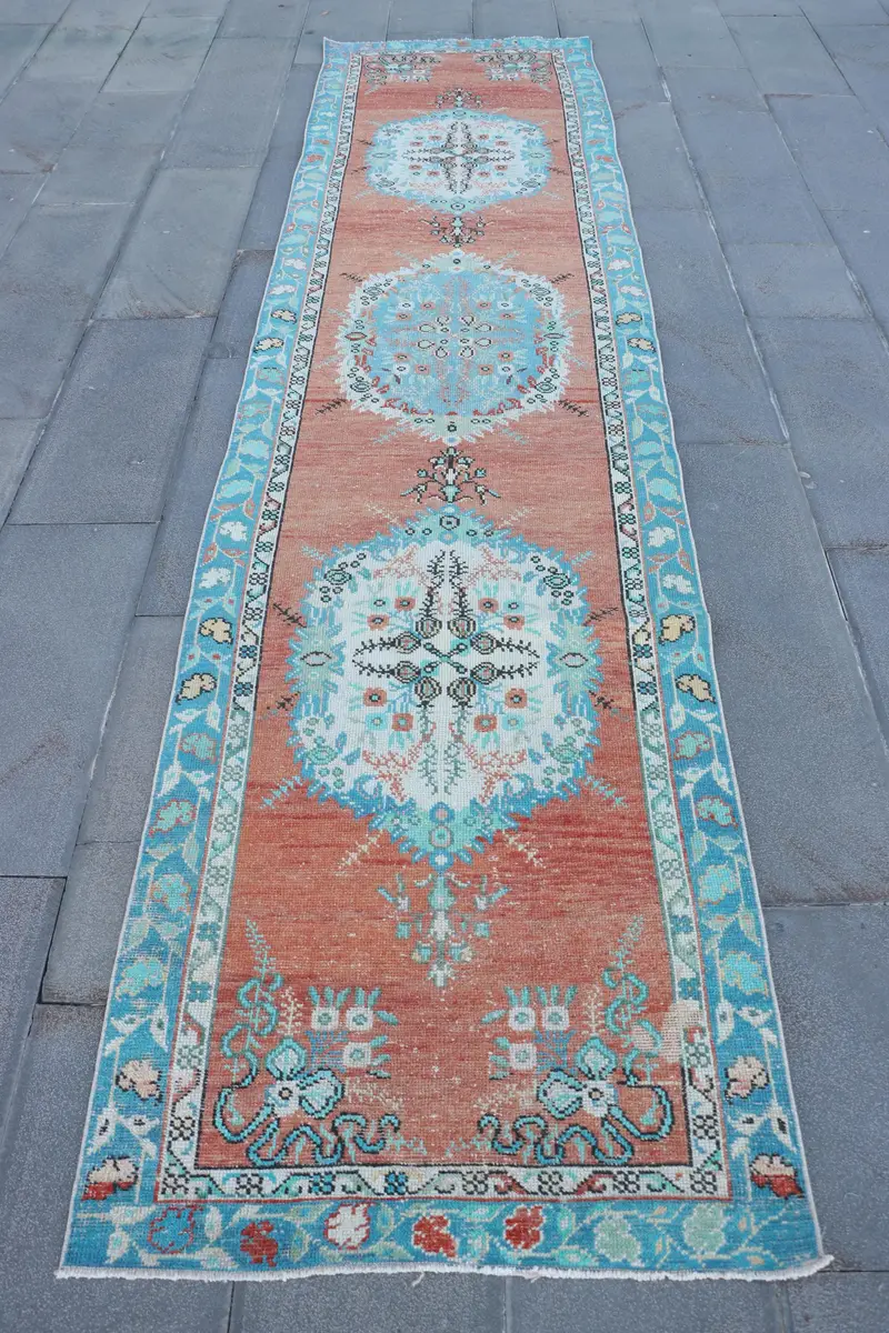 オレンジ&ブルーストライプラグ、2.9x12.2フィートの鮮やかな装飾