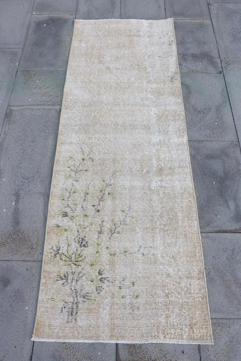 エレガントなベージュ&ブラックラグ、2.1x6.2フィートのボタニカルデザイン