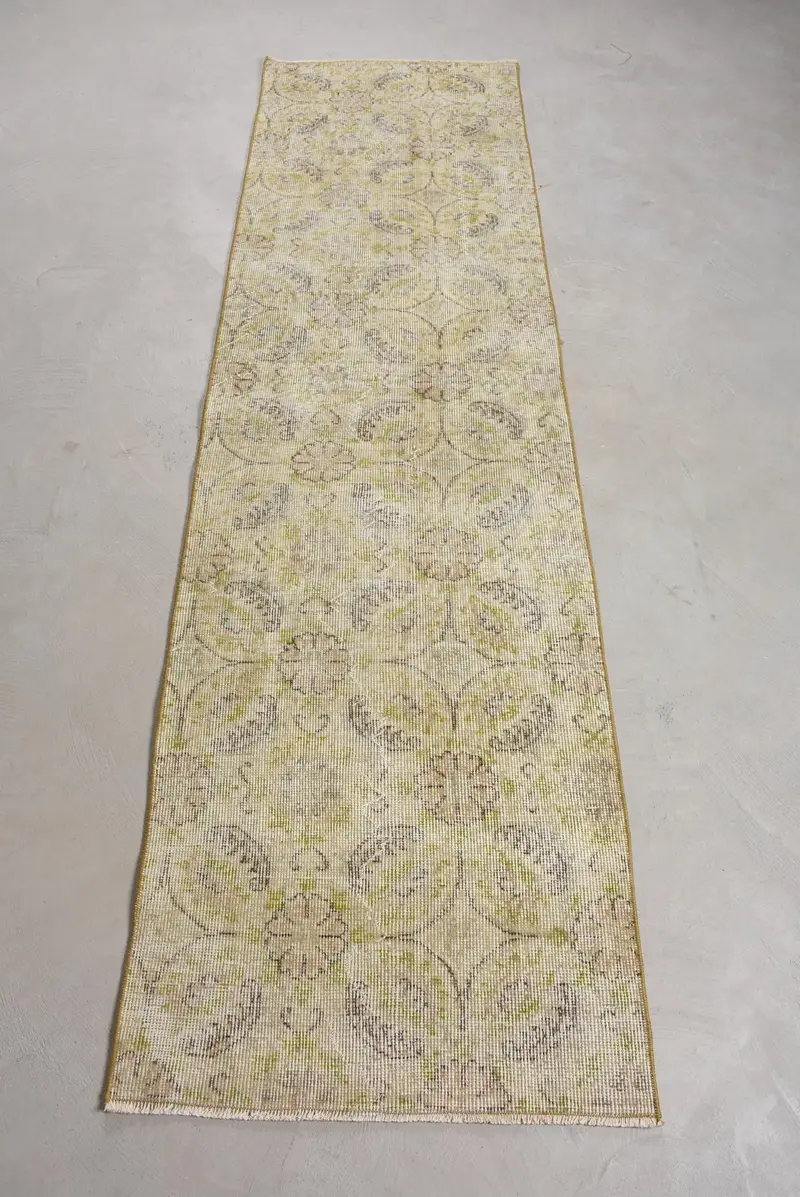 グリーン & ブラウン ラグ、2.3x8.3 フィート ボタニカル デザイン