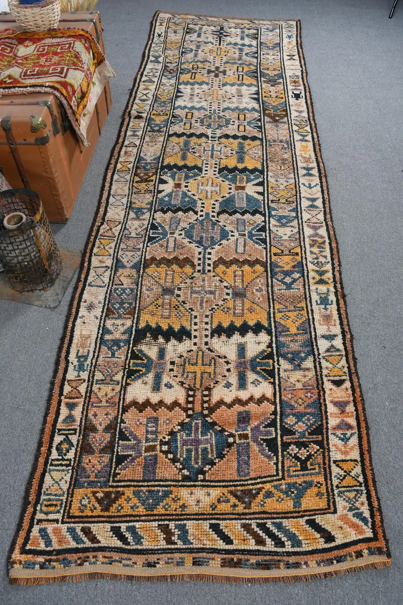 エレガントなベージュのラグ、3.3x11.8フィート、イエローのアクセント付き