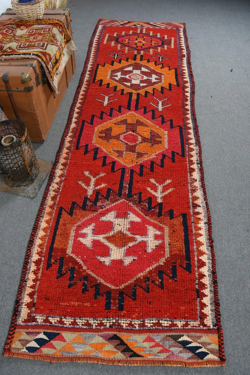 レッド、オレンジ アニマルプリント ラグ、2.9x10.9フィート シックな装飾