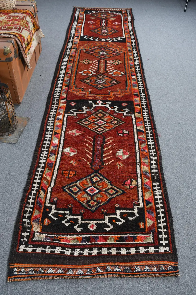 パープル&ブラウンラグ、2.8x12.3フィート幾何学模様の花柄