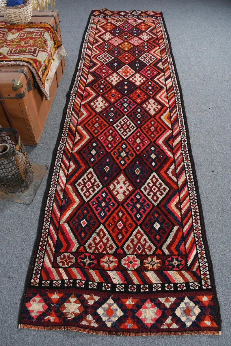 パープルモロッコラグ、2.9x11.2フィート、ピンクのアクセント