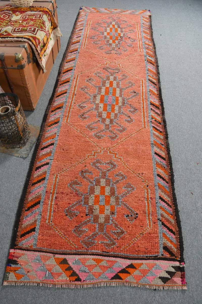 ピンクの花柄ラグ、3.1x10.7フィートのエレガ...