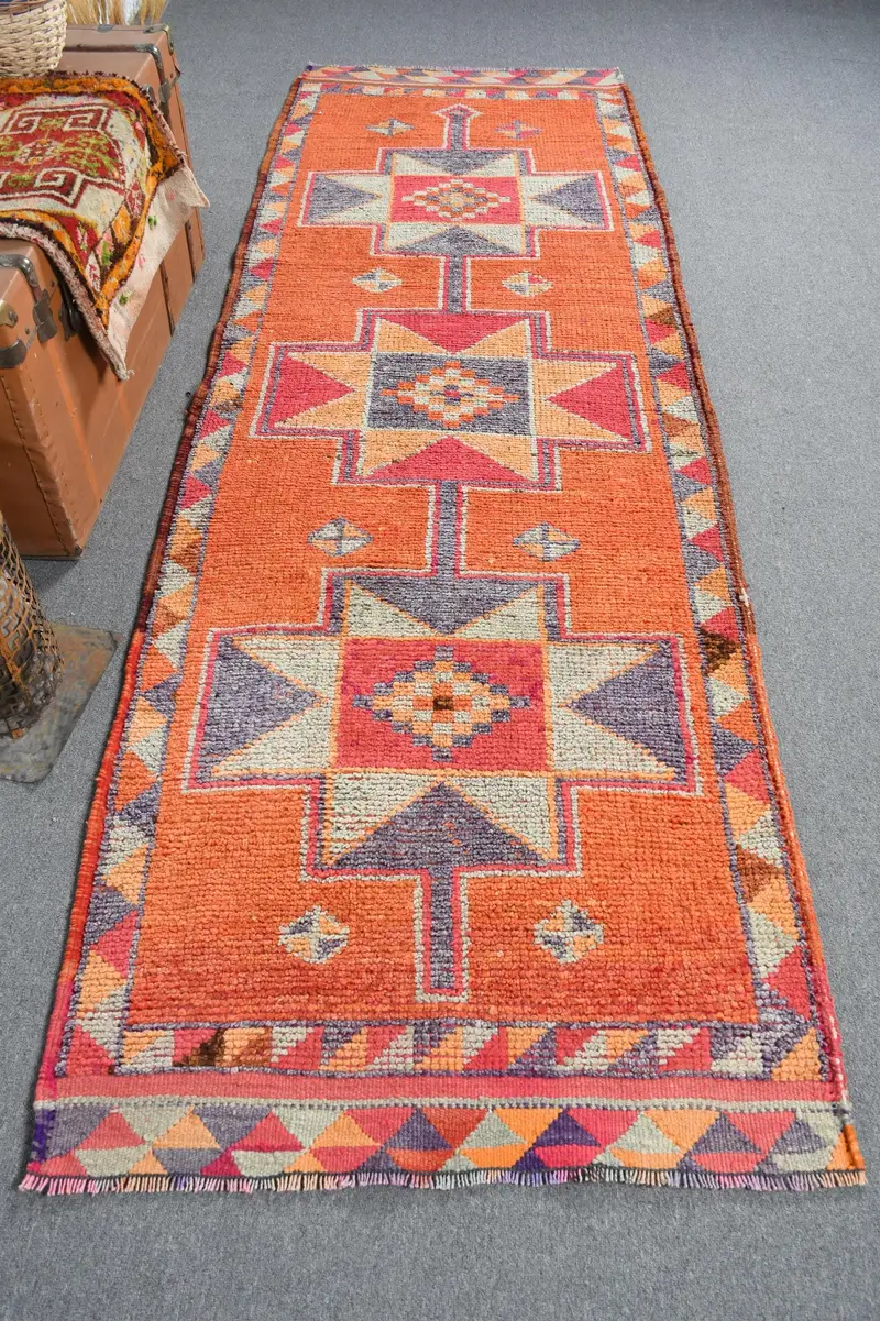 鮮やかな 3.2x9.8 フィート ラグ、オレンジ & ピンクの花柄幾何学模様