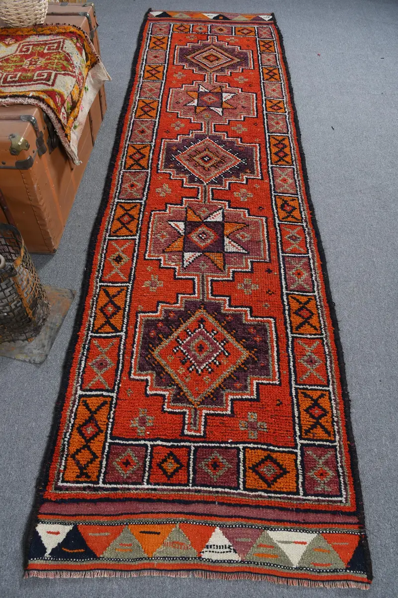 レッド、パープルチェックラグ、2.8x10.6フィートのシックな装飾