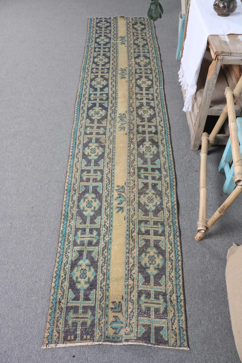 ブルーサウスウェスタンラグ、1.9x9.4フィート、グリーンアクセント付き