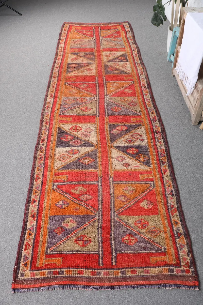 レッド&オレンジチェックラグ、3.1x10.7フィートシックな装飾