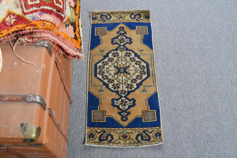 1.2x2.7フィートのラグ、ブラウン&ブルーの迷...