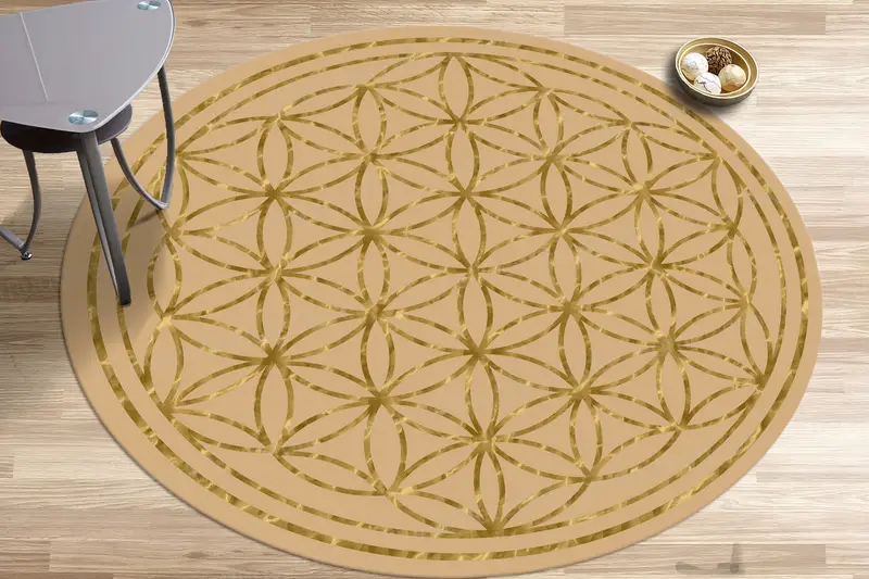 ゴールドサークル幾何学模様プリントラグ - モダンなラウンドデザイン