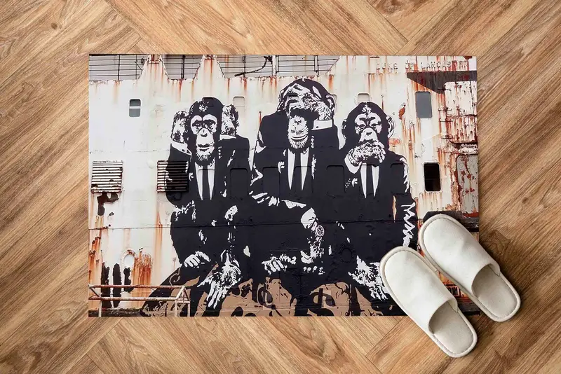 Banksy Three Monkeys グラフィティ プリント ラグ - モダンアート装飾