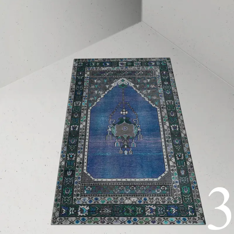 ヴィンテージトルコ柄プリントラグ、礼拝エリアパープル、レッド、ブラウン