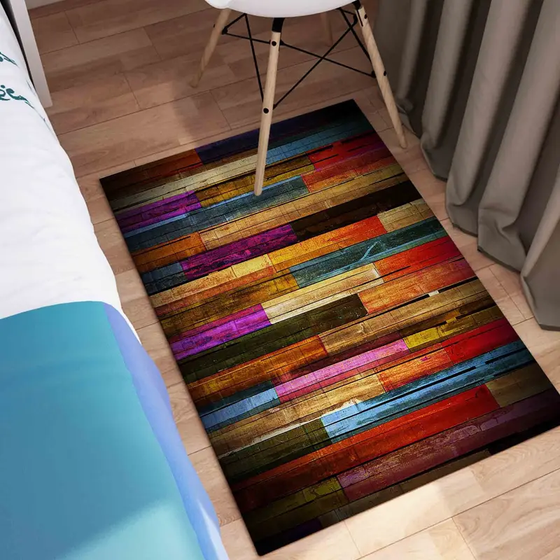 モダンなリビングスペースにぴったりの鮮やかなウッド効果プリントラグ