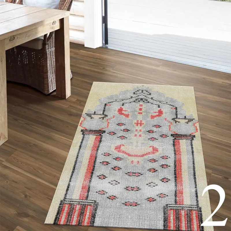 キリム柄祈り敷物、ブルー&グリーンヴィンテージトルコデザイン