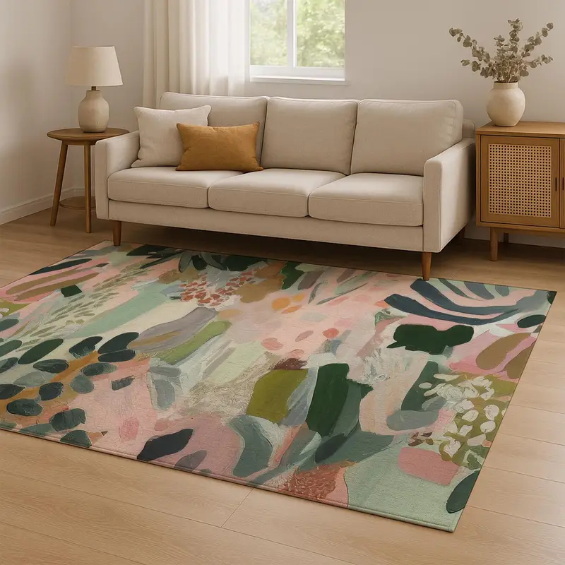 シンプルなグレーのプリントラグ - モダンな抽象デザイン