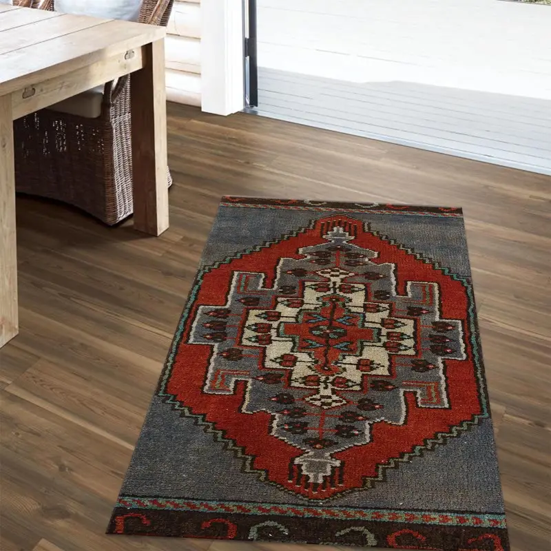 レッドグレーキリム柄プリントラグ、トルコ風祈り敷物