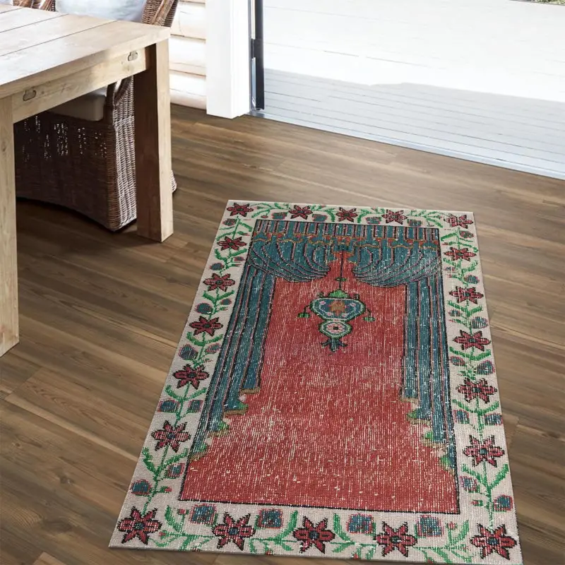 グリーンフローラルトルコヴィンテージプリントラグ - 祈りのデザイン