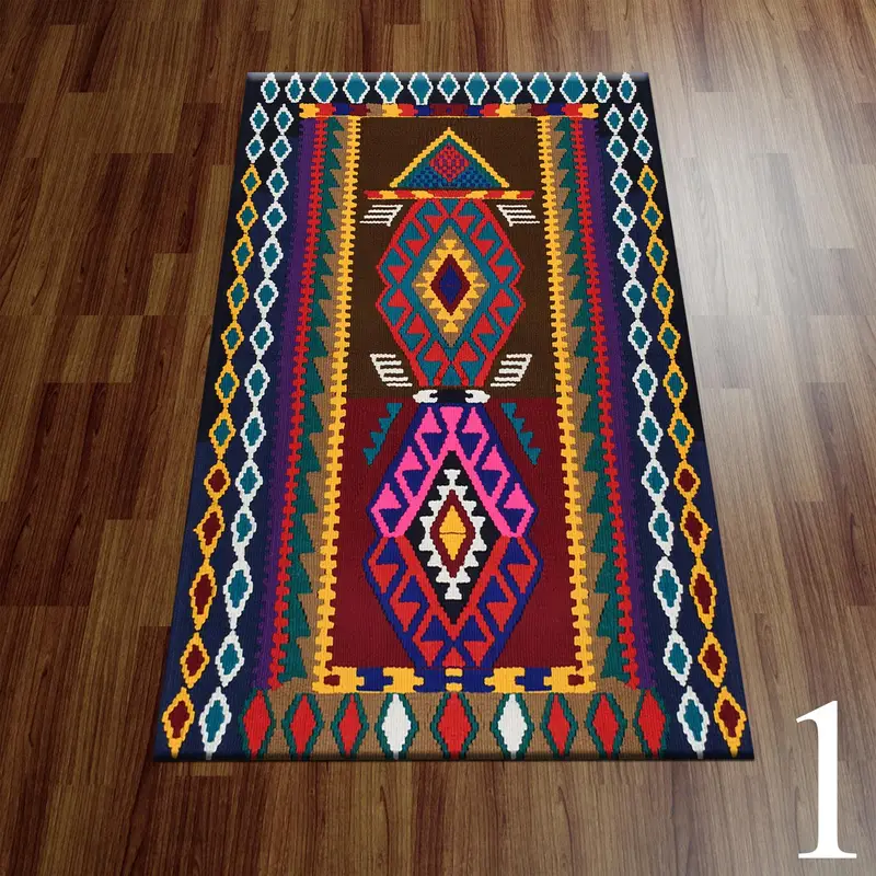 パープル & イエロー ヴィンテージ 幾何学模様プリント 祈りの敷物