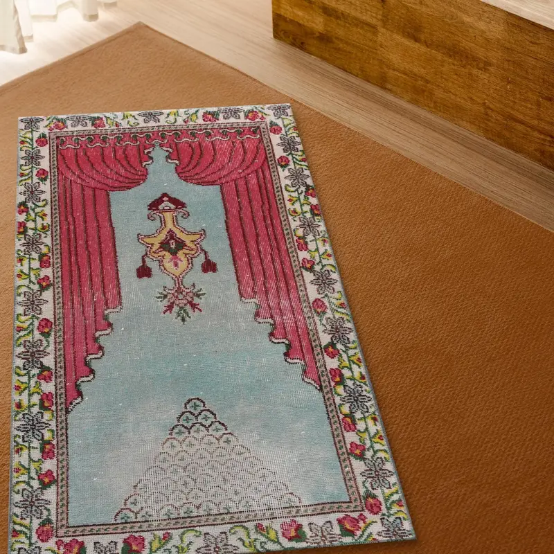 花柄の祈りの敷物、トルコキリムスタイル、レッド&グリーン