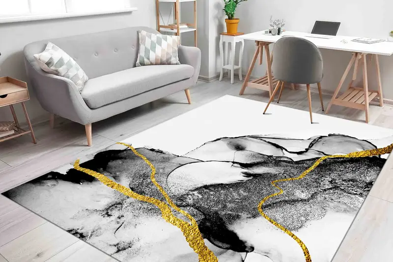 ブラックマーブルプリントラグ:室内装飾のためのモダンなエレガンス