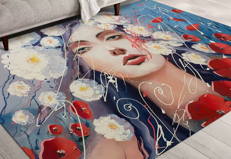 フローラル エレガンス: モダンで鮮やかなデザインのプリント ラグ