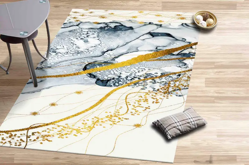 ゴールドマーブルプリントラグ: コンテンポラリー、ラグジュアリー、きらめくデザイン