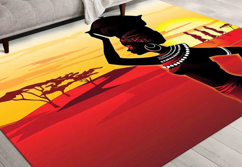 鮮やかなアフリカンサンセットプリントラグ、モダンな...