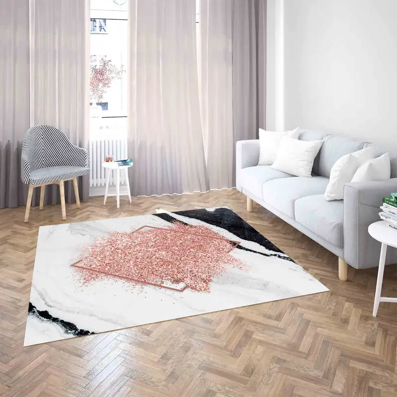 きらめくピンクの大理石プリント ラグ: 現代的なシックな室内装飾
