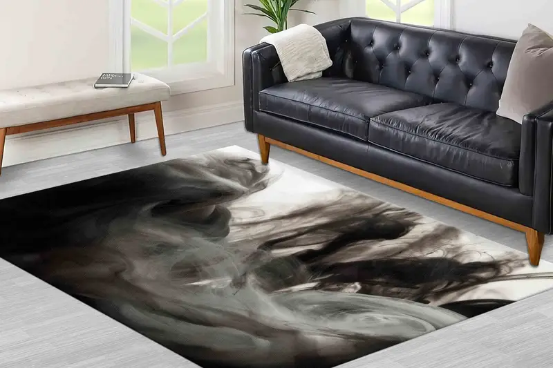 Smoking Hue プリント ラグ: 現代的なブラック & グレーのモダンなデザイン