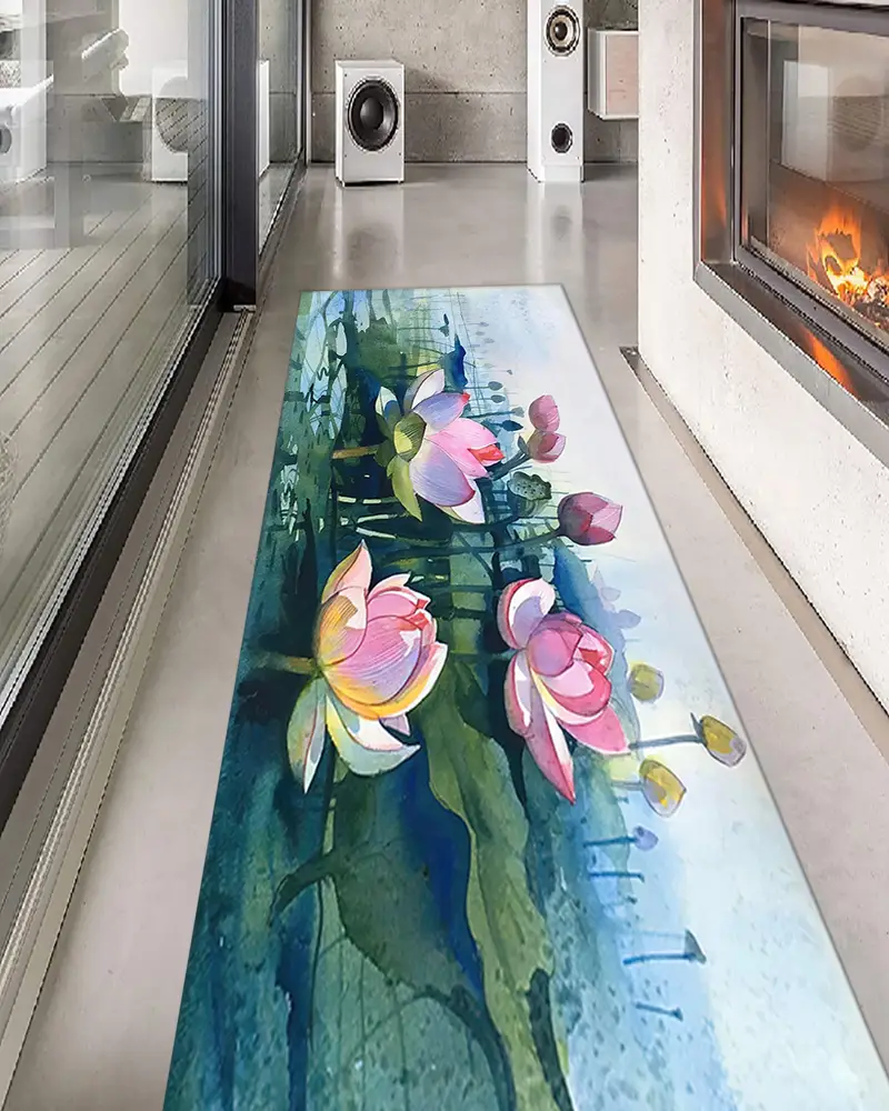 ロータス花柄プリントラグ、水彩ピンク抽象モダンデザイン