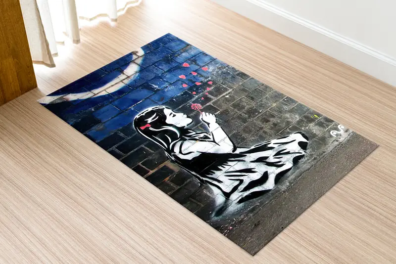 タンポポ ハート バンクシー ガール プリント ラグ - モダンアート装飾