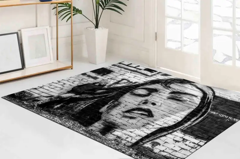 抽象的な女性のポートレートグラフィティプリントラグ、モダンアート装飾