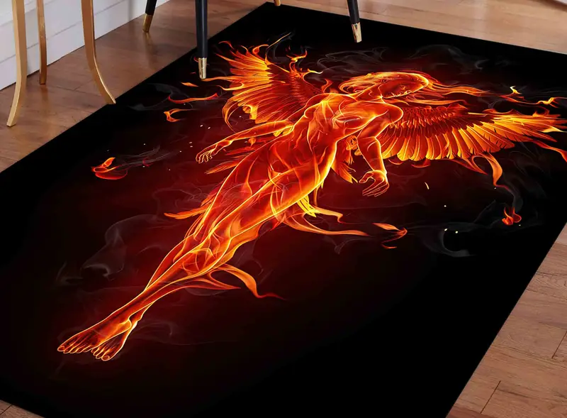 Fiery Womans Phoenix Girl プリント ラグ: モダンで鮮やかな装飾