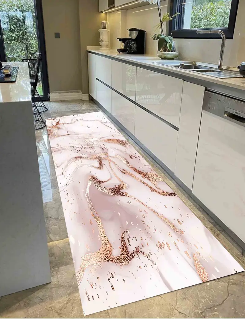 ゴールデンマーブルのきらめくプリントラグ、豪華でモダンなデザイン