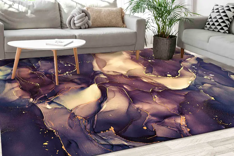 きらめくゴールドマーブルプリントラグ:高級ブラウンマーブルデザイン