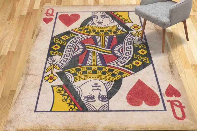 ハートの女王のトランプデザインプリントラグ、モダンなプレイルーム用
