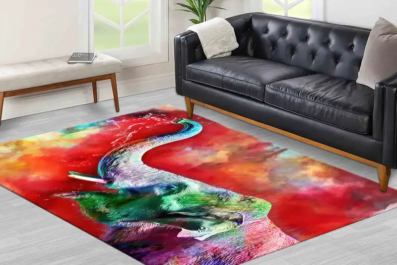 鮮やかなカラフルな象プリントラグ - モダンなアニマルデザイン