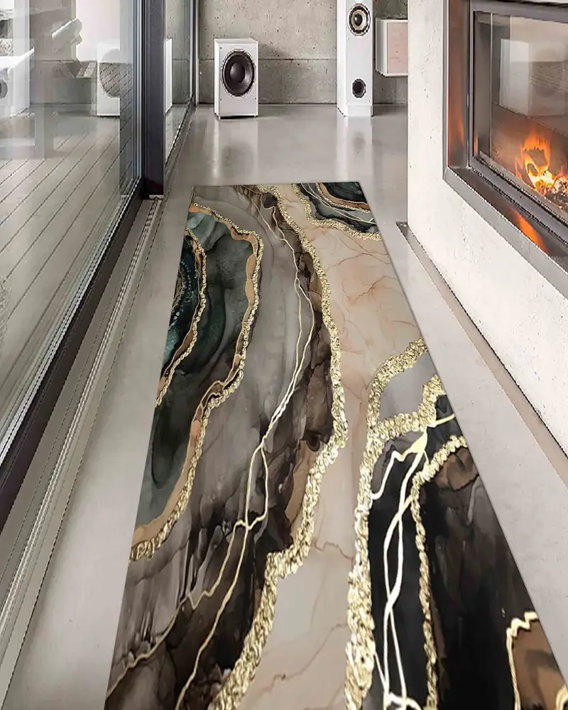 ブラウンマーブルプリントラグ:室内装飾用のモダンで贅沢なラグ