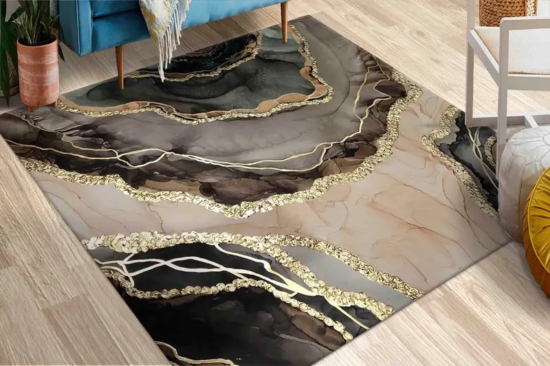 ブラウンマーブルプリントラグ:シックなインテリアのためのモダンラグジュアリー