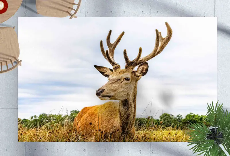 鹿の風景プリントラグ:サファリ野生動物アメリカ鹿の...