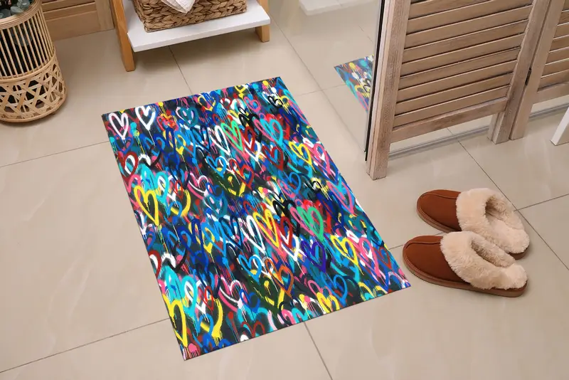 ラブハートプリントラグ:カラフルなバンクシーラブマ...
