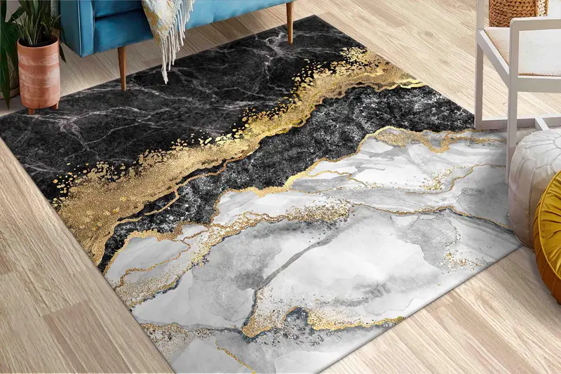 きらめく黒い大理石プリントのラグ - モダンで贅沢な装飾
